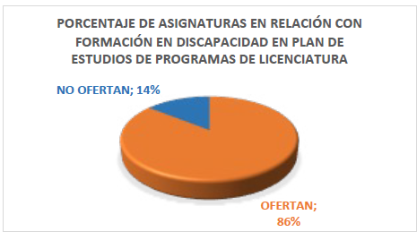 Figura 2: Porcentaje de asignaturas en relación con la formación en discapacidad en plan de estudios de programas de licenciatura.