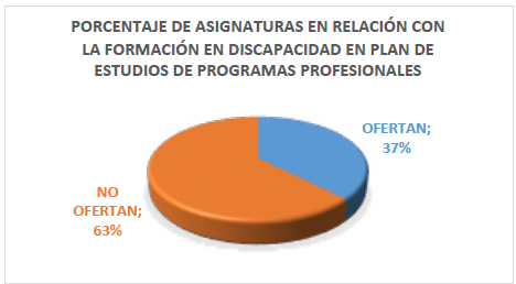 Figura 3: Porcentaje de asignaturas en relación con la formación en discapacidad en plan de estudio de programas profesionales