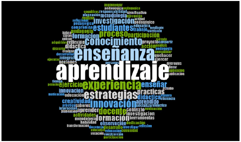 Por otro lado, la palabra enseñanza ocupa el segundo lugar. Esto indica que la práctica pedagógica se centra en un proceso de transmisión de conocimientos que radica en una noción permanente sobre la pedagogía tradicional, es decir, hay una articulación entre aprendizaje y enseñanza porque son los ejes centrales del escenario educativo. En este sentido,