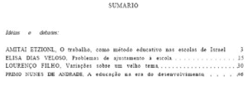 Quadro 1:: Recorte do sumário da rbep (Teixeira, 1958)