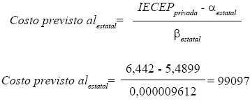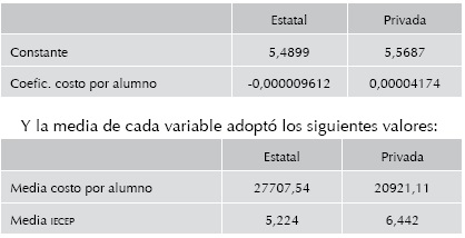 De la misma manera, se estimó el nivel previsto de IECEP del sector estatal para niveles de costo por alumno promedio del sector privado: