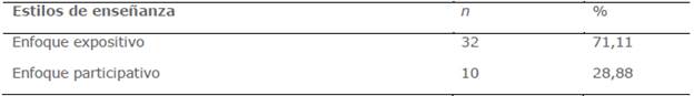 Tabla 3: Estilos de enseñanza