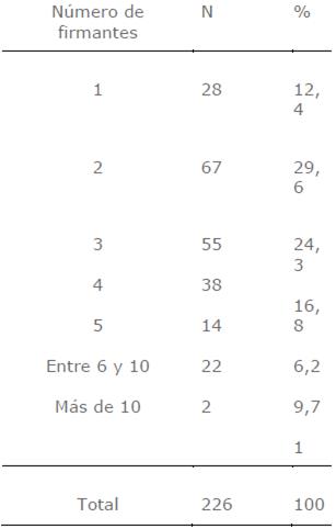 En segundo lugar, por lo que respecta a la información obtenida a través de los indicadores de colaboración, destaca la existencia de importantes redes entre investigadores. Como muestra la tabla 2, la mayoría de los trabajos fueron escritos en colaboración (87,6 %).