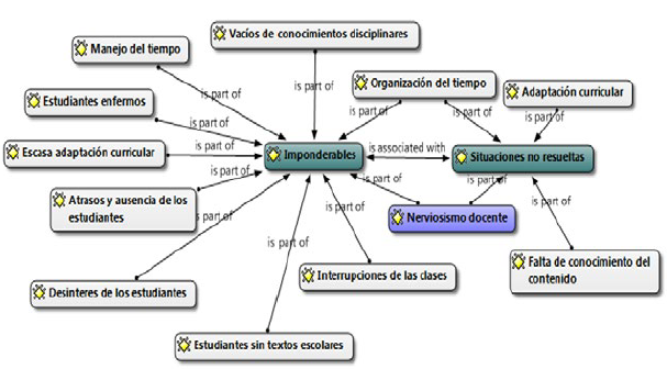 En la figura 2 se presentan diferentes situaciones imprevistas y no resueltas. Uno de los principales problemas se asocia con el tiempo de la clase. En palabras de un docente entrevistado: