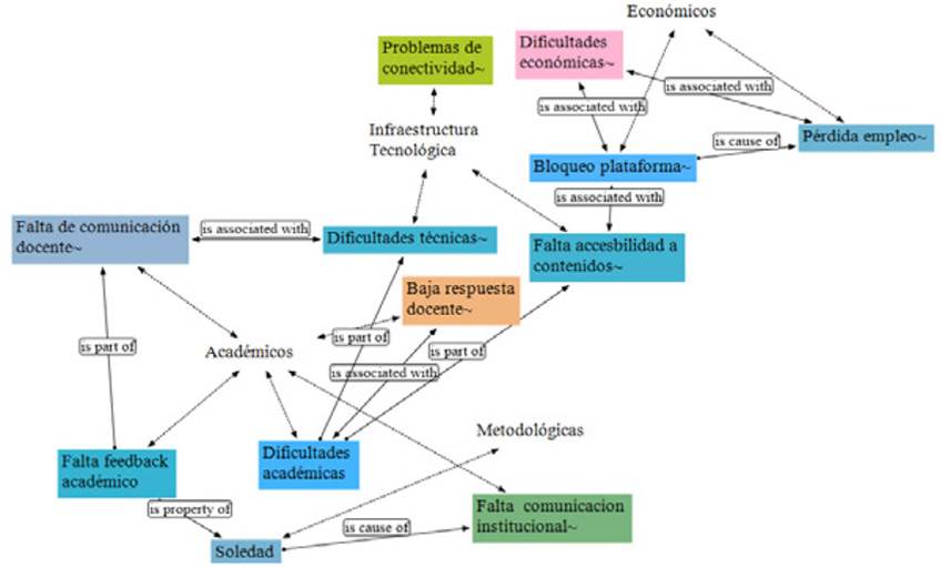 Los resultados de las entrevistas permiten apreciar cómo los motivos económicos, al momento de pagar la matrícula de sus estudios, y las consecuencias académicas (Desconexión de la plataforma virtual), ocupan un lugar central en sus razones (figura 1):