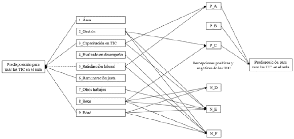 Tabla 4: Influencia de las percepciones sobre la predisposición para usar las TIC en el aula
