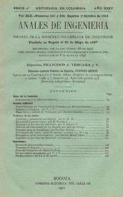 Figura 4: Portada de la revista Anales de Ingeniería, publicación de la Sociedad Colombiana de Ingenieros, año 1911