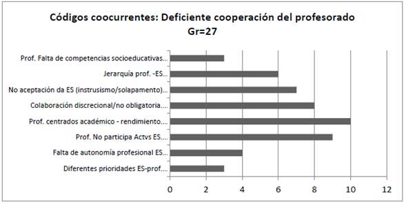 Figura 5: Códigos coocurrentes con el código sobre la deficiente cooperación con el profesorado