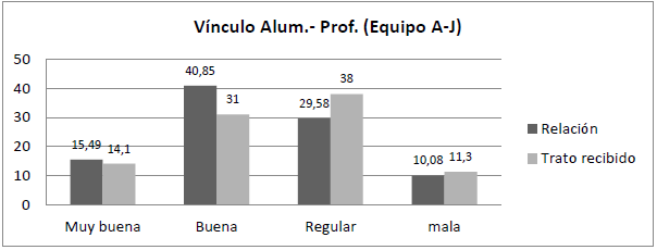 Figura 6: Gráfico de barras sobre el vínculo entre el profesorado y el alumnado en el equipo de tipo aditivo jerarquizado