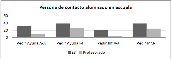 Para identificar el tipo de contacto y el nivel de confianza que los estudiantes tienen con cada profesional, se les preguntó a quién acuden en el centro cuando necesitan ayuda o información.