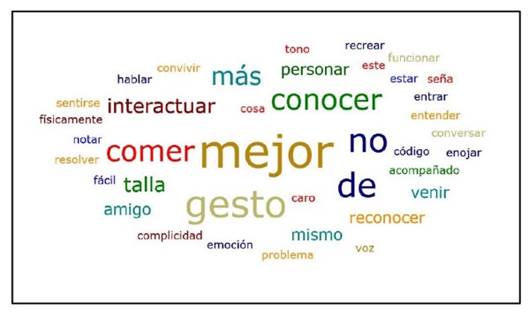 En la Figura 4 se observan las palabras que más se repiten en las respuestas de las y los estudiantes con respecto a los símbolos grupales, entre ellas: mejor, conocer, gestos, interactuar, entre otras.