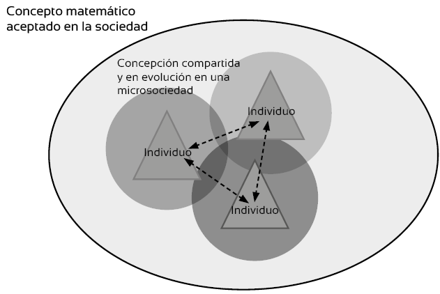 Centrar la didáctica de las matemáticas en el individuo trajo consigo un fortalecimiento de marcos teóricos constructivistas tales como la visualización matemática (Zimmerman & Cuningham, 1991) y la noción de representación (Duval, 1993, 1995; Janvier, 1987), entre otros. Desde finales del siglo XX se fortalece un nuevo paradigma, que promueve un cambio teórico-metodológico, en busca de un acercamiento del aprendizaje dentro de un marco socioconstructivista. Sin embargo, como lo señala Von Glasersfeld (2004), al haber avanzado más de cuarenta años en una teoría constructivista (e incluso radical) centrada en el individuo, no es posible transferir directamente todos esos conocimientos a un acercamiento social del aprendizaje. En sus propias palabras, este autor señala: