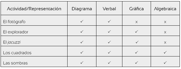 La actividad seleccionada tiene el nombre de "El fotógrafo". Esta situación problema fue diseñada como actividad introductoria y por lo tanto no es uno de sus objetivos llegar a una representación gráfica ni algebraica (véase la figura 6).