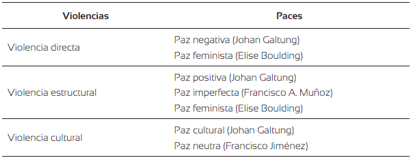 Los conceptos de paz neutra, paz imperfecta y paz cultural nos permiten entender hacia dónde van las nuevas formas de abordar y construir la categoría de paz en el inicio del siglo XXI. El cuadro 1 sintetiza el escenario conceptual planteado.