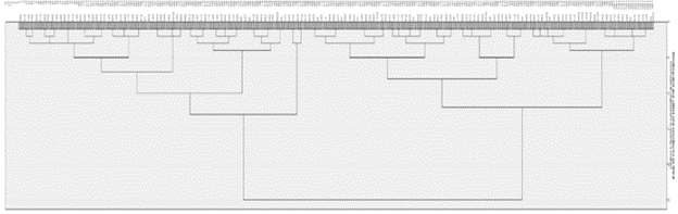 En un primer momento, se estandarizaron las variables con el objetivo de unificar sus escalas. El agrupamiento se decidió por caso y se usó el método de Ward, para minimizar la varianza intragrupal y maximizar la homogeneidad dentro de los grupos; previamente se chequeó la presencia de datos extremos. Se tomó como punto de corte la distancia 12 para identificar los grupos, sabiendo que a menor distancia los conglomerados son más parecidos.
