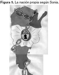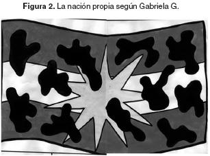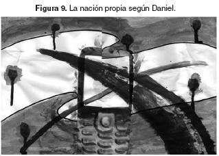 Veamos ahora las representaciones gráficas que sobre la nación propia llevaron a cabo a cabo diecinueve chicos, pertenecientes a uno de los grupos con los que se adelantó el estudio. Consideramos que aquí aparece mucho menos la nación vinculada a la historia aprendida que los imaginarios de nación a partir de las vivencias cotidianas de los jóvenes, una relación inextricable entre lo tangible y lo posible.