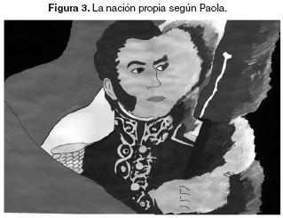 Estas representaciones quizás puedan complementar, incluso contradecir, algunos de los hallazgos más relevantes arriba expuestos. Como es sabido, la imagen muchas veces dice cosas que la palabra oral o escrita no siempre logra expresar. Sin embargo, la pretensión original en este apartado del estudio ha sido contar con un recurso de apoyo a los relatos, una ilustración, mediante otros medios, de lo allí significado, mediante la cual los chicos también dan cuenta de la manera como viven su nación, de cómo construyen el tránsito de ida y regreso entre el aprendizaje de la historia y la experiencia de todos los días.