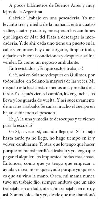 La historia cotidiana, el pasado personal es aquí la historia de la no agencialidad, vivencia de los efectos particularmente negativos de aquello que está siendo determinado por otros. Para los jóvenes que terminan hoy la escuela secundaria en Solano, en cualquier sector marginal del conurbano bonaerense, en tantos otros lugares de la Argentina o de América Latina, y que viven una enorme incertidumbre ante un futuro ligado a la precarización del empleo y a la creciente restricción de oportunidades de acceso a la educación superior, la historia, la nación y la historia de la nación son abstracciones muy distantes de la experiencia de todos los días. En franco abandono de propósitos societales, la actual versión del Estado-nación mínimo reduce la adscripción nacional al nacimiento o permanencia de las personas en un determinado territorio y a su vinculación afectiva con símbolos y relatos patrios autocelebratorios, pero a la vez desprovistos de metas comunes o de alguna idea de proyecto compartido.