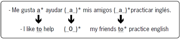 En la figura 5 se muestra un análisis de los errores que provienen de la LM. La diagramación contrastiva de estos permite al estudiante identificar los elementos transferidos que inducen a error. Así, en la figura 5 se observa cómo el aprendiente de L1 inglés transfirió la traducción literal de la preposición "to", la omisión de la preposición "a"* para introducir complemento de persona y, finalmente, la omisión o no traspasó particularmente de la preposición "to"*.