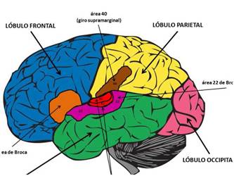 Figura 3: Lóbulos cerebrales y áreas comunes en la percepción de la música y el lenguaje