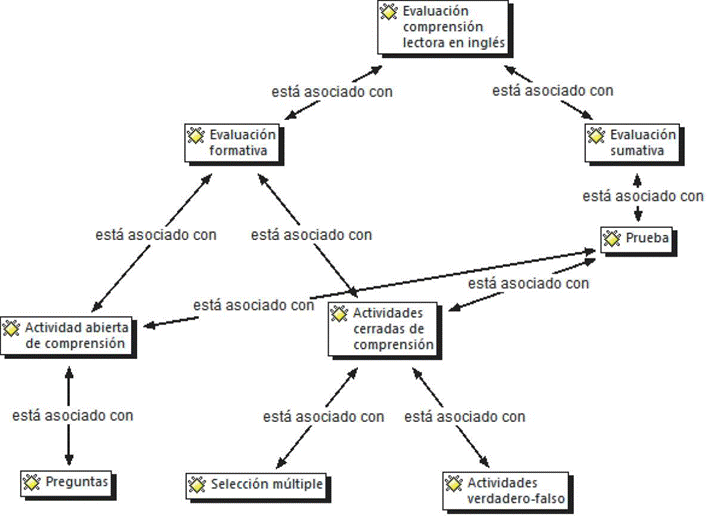 Figura 3: Red conceptual asociada a Creencias de futuros profesores de inglés sobre evaluación respecto a la habilidad de comprensión lectora.