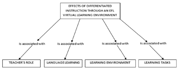 Although the school targeted in the present study has two English language labs, most lessons do not meet the needs of individual learners (Yang, & Chen, 2007), according to the findings during the diagnostic stage of the study. On the other hand, despite the fact that there are many research studies demonstrating the effectiveness of DI on students' achievement, and after revising different journals and articles, it seems that many teachers in Colombia, and especially in the Department of Huila, do not take these results into account to provide a differentiated learning environment. Also, there are not many studies that integrate DI and technology to support teaching, promote innovative activities, or to enhance motivation. Hence, the present study intends to answer the following research question: What are the effects of differentiated instruction through an EFL virtual learning environment on the learning process of tenth graders from a private school in the city of Neiva?