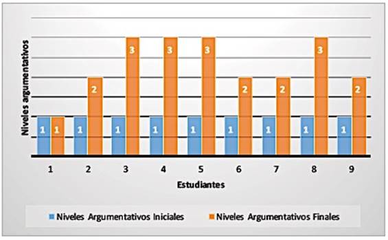 Figura 1: Comparación de los niveles argumentativos iniciales y los niveles argumentativos finales