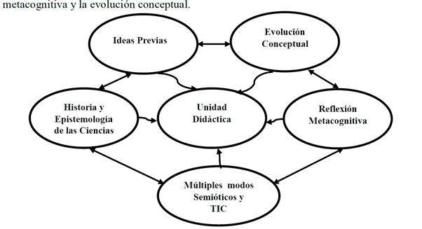 Según Tamayo (2006) y Sánchez et ál. (1993), la unidad didáctica es un proceso flexible de planificación de la enseñanza de los contenidos relacionados con un campo del saber específico para construir procesos de aprendizaje en una comunidad determinada. Debe estar constituida a partir de las ideas previas, la historia y la epistemología de las ciencias, los distintos modos de representación semiótica y las Tic, la reflexión metacognitiva y la evolución conceptual.