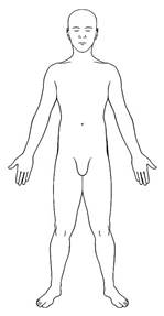 A: Cara B: Pecho C: Bíceps derecho D: Abdomen E: Mano derecha F: Rodilla derecha G: Pie derecho H: Muslo izquierdo (vista posterior) I: Dorso de la mano izquierda J: Espalda media K: Glúteo izquierdo L: Antebrazo derecho (Vista Anterior) M: Muslo derecho (Vista anterior) N: Rodilla anterior derecha Ñ: Pierna izquierda (Vista anterior) O: Hombro derecho P: Planta del pie derecho