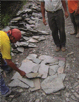 Fotografía 1: Cálculo de una tonelada de lajas de piedra-tablón por medio del metro cuadrado o lineal.