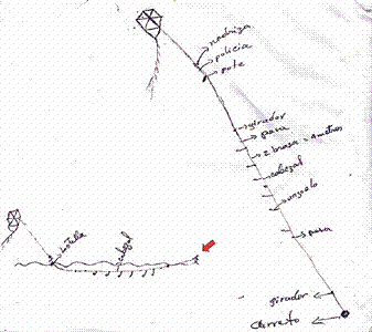 Figura 3: Segunda versión de un aparejo de pesca hecha en conjunto con otro pescador con cometa.