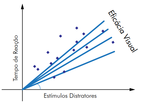 A partir dessa interpretação funcional, o aumento de tempo de reação em função dos estímulos altera o coeficiente angular da função linear e indica a eficácia de busca visual realizada no campo em estudo. Assim, quanto mais estímulos distratores, maior será o tempo de reação do indivíduo às atividades propostas, que compromete a eficácia visual dos objetos presentes na atividade e consequentemente o tempo de solucioná-la.