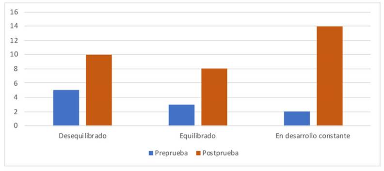 Este resultado puede indicar que el diseño y la ejecución de las propuestas didácticas sugeridas en el curso mejoran factores relacionados con la autoimagen, como el trabajo cooperativo, el reconocimiento de habilidades y capacidades, las relaciones sociales, la aceptación, la escucha, el sentido de pertenencia y el manejo adecuado de situaciones (Gable et al., 2004; Milicic, 2015). Al mismo tiempo, permite a los estudiantes ver progresivamente sus debilidades en torno a la imagen que se asignan a sí mismos y a otros.