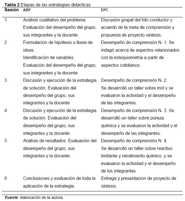 Los pasos seguidos en las dos estrategias didácticas se observan en la tabla 2.
