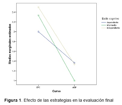 La tabla 6 muestra un efecto significativo de la estrategia didáctica en los resultados de la evaluación final, pero no del estilo cognitivo.