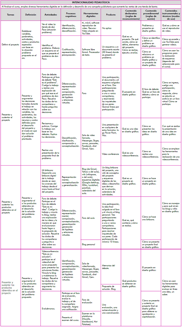 Como se observa en la tabla 1, los contenidos guardan correspondencia con las actividades y herramientas descritas.