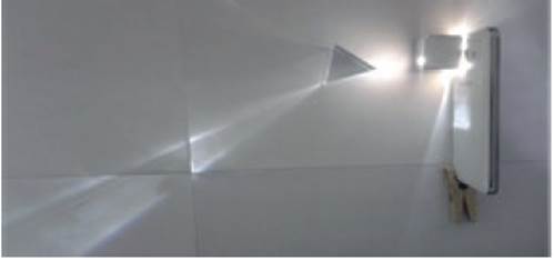 El haz de luz visible es colimado por una rendija y enfocado hacia el prisma. El estudiante es consciente de la descomposición de la luz por el prisma caracterizándola como una superposición de haces de diferentes colores, es decir, a partir de la actividad se busca que el estudiante construya una experiencia sensible en torno al efecto observado, el espectro de la luz visible.