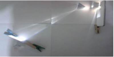Figura 3: Disposición de la linterna, los colimadores y los prismas.