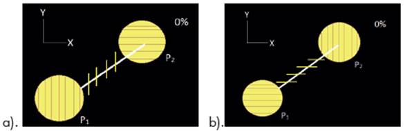 Figura 10: Dos polarizadores: a. el primero P| con eje de polarización en la dirección (y) y el analizador P2 con su eje de polarización en la dirección (x). b. el primero P| con eje de polarización en la dirección (x) y el analizador P2 con su eje de polarización en la dirección (y).