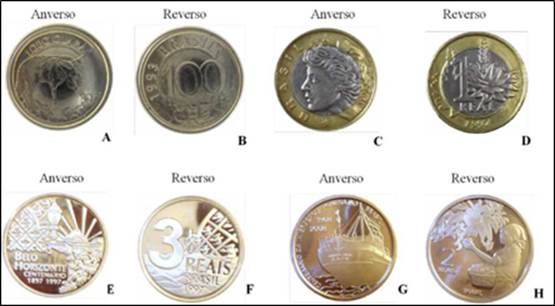 Foi realizada uma pesquisa investigativa na homepage http://www.moedasdobrasil.com.br/moedas/index.asp, que possui um completo compêndio das moedas brasileiras de todas as épocas. Desse site, foram retiradas todas as moedas que possuíam potencial para serem utilizadas no ensino de ciências. O site supracitado foi escolhido para servir de referência no presente estudo, já que tem grande relevância para a área numismática e apresenta todas as moedas brasileiras que nos interessam.