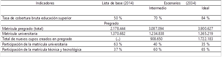 Fuente: cálculos de Mora y Múnera con base en CESÜ, Acuerdo por lo Superior 2034. Propuesta de política pública para la excelencia de la educación superior en Colombia en el escenario de la paz. Bogotá: CESÜ, 2014, p. 25