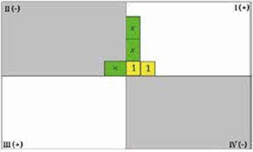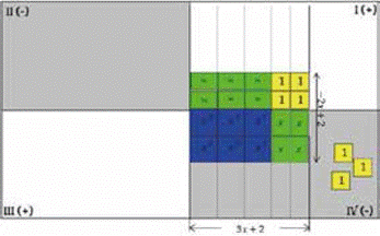 Se ubica uno de los polinomios una línea, y el otro polinomio en la línea inferior. Cada término del polinomio de la segunda línea se multiplica por cada término de la primera, simulando el proceso que se lleva a cabo en la multiplicación de números naturales.
