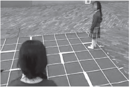 El juego comienza con la observación de un trayecto, planeado y ejecutado por el director del juego, es decir el docente, a partir de la posición personal (figura 2). Posteriormente, el trayecto debe ser reproducido por los jugadores, primero con los ojos abiertos (figura 3) y luego con los ojos vendados (figura 4).