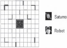 El juego consta de una cuadrícula de 10 X 10 y una serie de obstáculos dibujados, una ficha que simboliza la meta (Saturno) y un robot (figura 6).