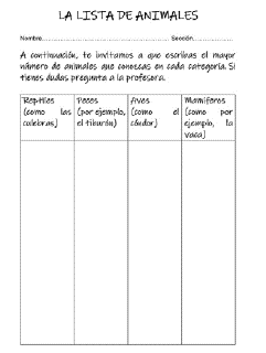 Figura 1: Formato utilizado en la actividad “La lista de animales” para recoger la información