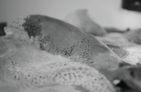 De la pregunta de por qué las botaban surgió un proyecto -Defectus (véase la figura 3)- sobre lo defectuoso, lo diferente, cuyo subtítulo amoide significa las células primarias que empiezan a deformarse y a construir otras cosas. La ceramista ensambló las distintas piezas independientes que reproducen las legumbres rechazadas como formas celulares, las cuales, aunque le parecían muy bellas, seguían siendo las zanahorias deformes y que en la obra adquieren una calidad de piedra, otro material que no fueran cerámica. El contacto con estas raíces la llevó a descubrir que existen muchas leguminosas, frutas y verduras que contienen estas características de deformidad y que siempre son dejadas a un lado, repelidas por no ser del interés del consumidor. No las compran, aunque saben igual, y pueden ser hasta más naturales por no ser afectadas por los pesticidas. Aunque repelidas, las legumbres siguen presentes en la cadena alimenticia, serán consumidas como alimentos por animales herbívoros, los cuales serán consumidos por los carnívoros, y así sucesivamente los cuerpos muertos serán descompuestos por los hongos y bacterias, sus elementos retornaran al suelo, donde serán provecho de plantas, reiniciando el ciclo constante de materia y energía.