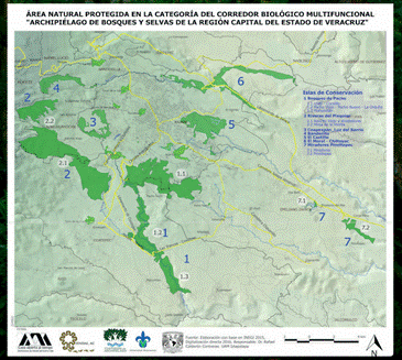 Figura 1: Mapa del Área Natural Protegida Archipiélago de Bosques y Selvas de Xalapa de la Región de Xalapa