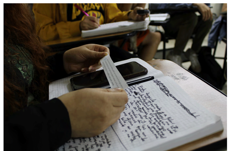 Lo experiencial. Es un eje transversal del proyecto vinculado al concepto de excritura y al objetivo de situar las experiencias de género de sus participantes desde la creación escritural. La lectura y exploración creativa de escrituras autorreferenciales como el diario y la autoficción detonaron experiencias vinculadas al recuerdo y a la memoria, dimensiones que también se abordaron a partir de la música como evocación del pasado. Lecturas polifónicas y meditaciones guiadas también hicieron parte de acciones orientadas a poner el cuerpo y la sensación en el aula de clase, es decir, a la percepción de otros cuerpos, lugares y entornos como base de una experiencia del cuerpo vivido.