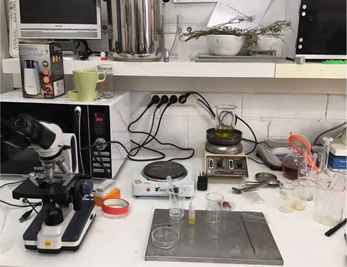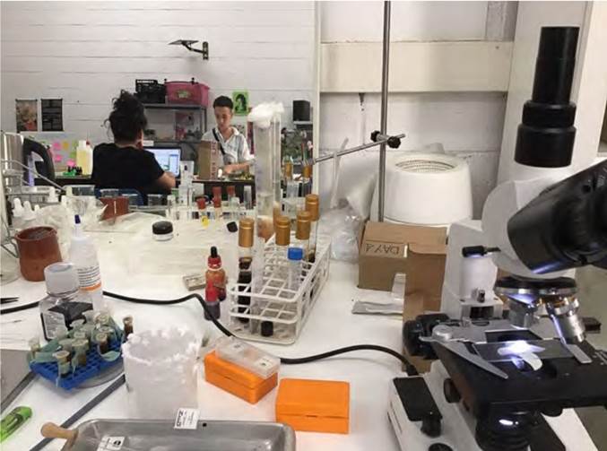 En el presente, el colectivo Quimera Rosa se ubica en el instituto Hangar. Allí desarrollan sus creaciones artísticas en un espacio conocido como laboratorio húmedo (WetLab) (Figuras 9 y 10).