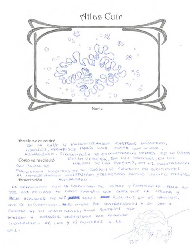 Este es un espacio en el que se práctica el biohacking. Estas prácticas consisten en democratizar el conocimiento de la ciencia, principalmente el conocimiento de la biología, y en usar técnicas DIY para crear instrumentos y materiales (Gayozzo, 2021, p. 7). El pasado mes de octubre tuve la oportunidad de participar en una residencia con este colectivo. Esta residencia, bajo el concepto del humedal, incitaba a pensar y a devenir con el mundo microbiano. Entre las actividades de la residencia sobresalen el cultivo de bacterias y hongos a partir de muestras de material biológico como la saliva, la creación de cristales utilizando sales, la fabricación de aceites a base de semillas y el ejercicio del Atlas Cuir —la invención de un ser ficcional que solo puede observarse a través de un microscopio— (Figuras 11 y 12).